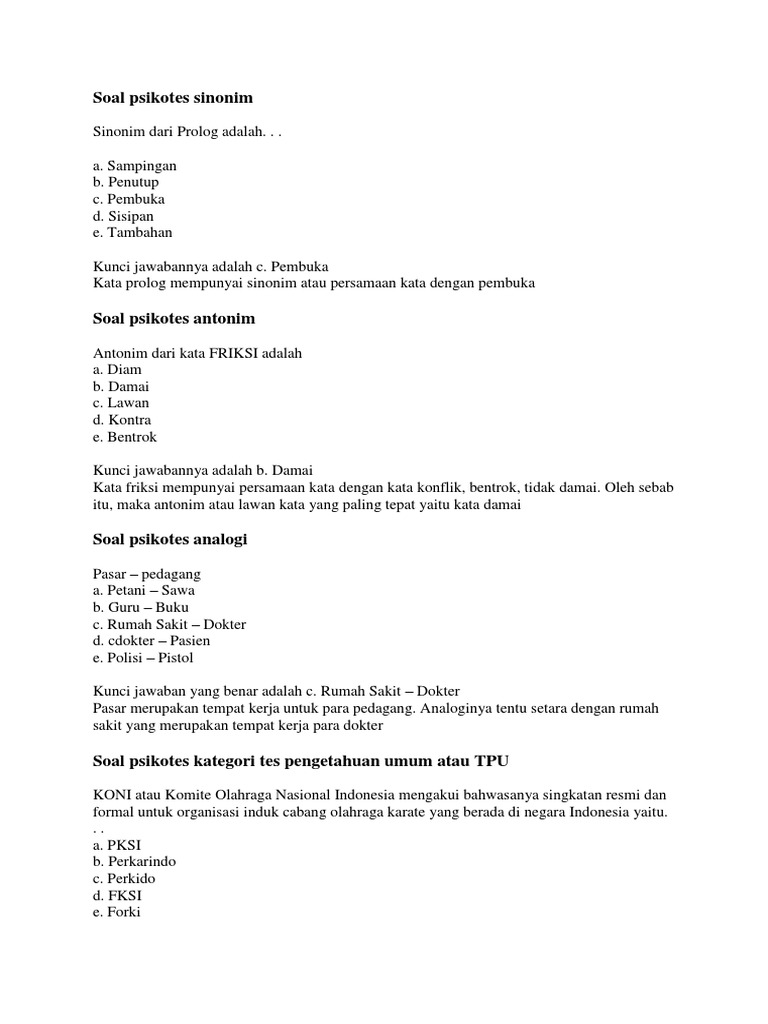 Dalam contoh soal psikotest bisa dilihat bahwa bentuk tes ini sangat bervariasi.